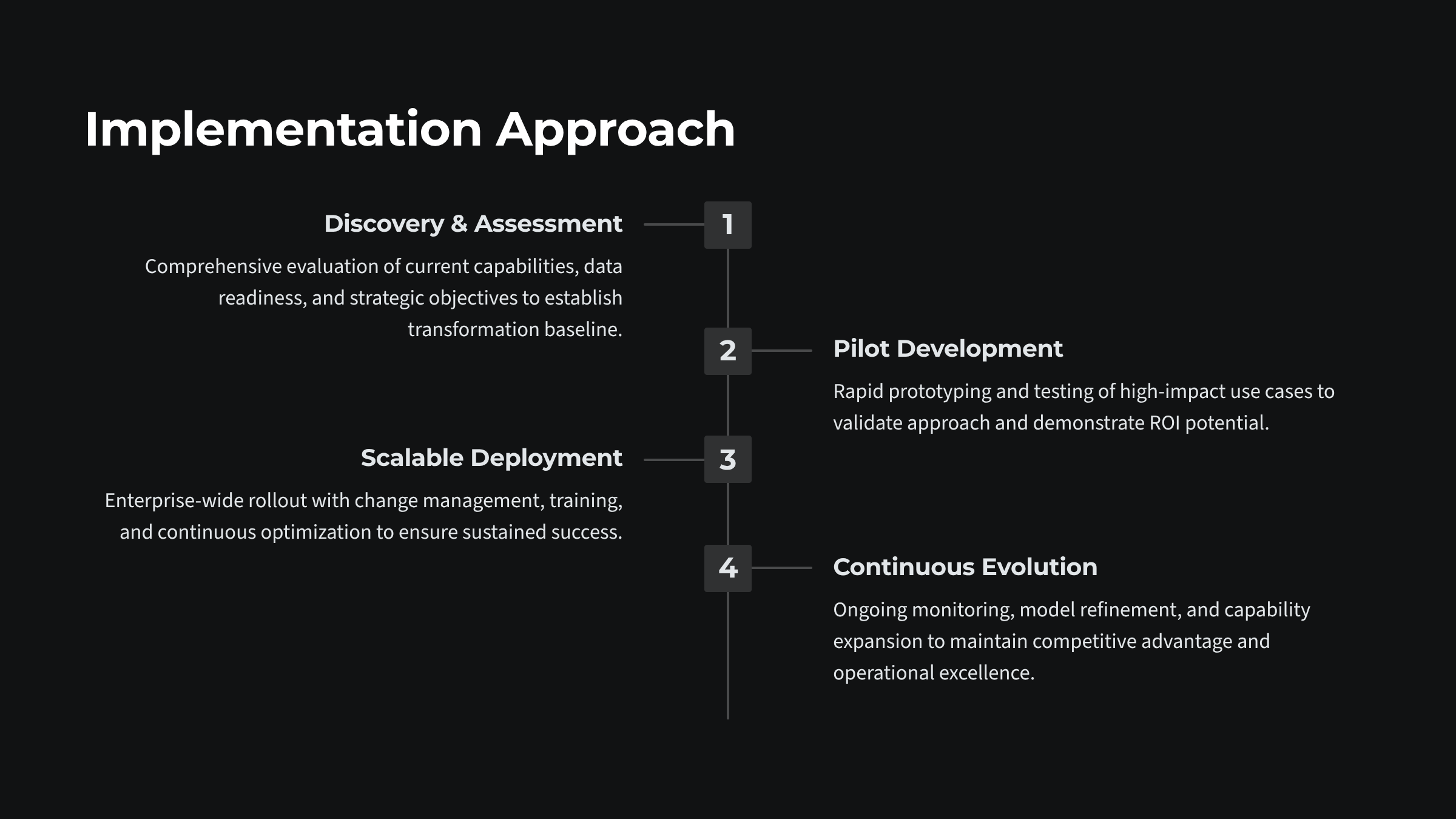 Your business holds immense potential within its data and processes. We provide the expertise to unlock it. We architect practical AI solutions that solve real-world challenges, streamline complex operations, and turn your latent potential into measurable performance.